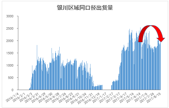 由上圖可以直觀的看出,今年市場整體出貨量同比去年增幅明顯,主要是銀川區域銀西高鐵及管廊等項目的建設,拉動市場需求。但邁入七月份,市場出貨量出現明顯萎縮,主要是一方面,市場價格穩步上行,終端采購成本不斷提高,工地開工受到明顯影響。另一方面,七月份作為需求淡季,市場出貨難免受季節性弱勢需求影響。